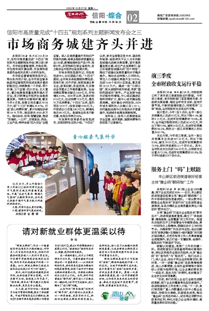 本报讯(记者 张方志)10月24日,信阳市高质量完成“十四五”规划系列主题新闻发布会(第三场)举行。市市场监督管理局、市商务局、市住房和城乡建设局、市发展和改革委员会相关负责人分别作发布。