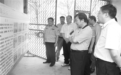 近日,省公安厅副厅长王德周在市公安局副局长汪守贵、淮滨县委书记吴刚、县委政法委书记方辉、县公安局局长董志刚的陪同下,冒雨深入省公安厅扶贫帮扶点、淮滨县台头乡宋营村调研帮扶工作开展情况,并考察基层公安工作和看望慰问困难群众。图为王德周等在淮滨县考察调研时的情景。 王长江 姜树海 摄