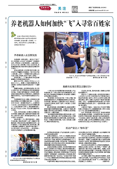 政策正持续加力。今年2月,我国牵头制定的养老机器人国际标准正式发布,为各类养老机器人的产品设计、制造、测试和认证等提供基准;5月,工信部和民政部联合部署,分阶段实施一批智能养老服务机器人攻关和应用试点项目,加快推动机器人赋能智慧养老服务和银发经济发展。