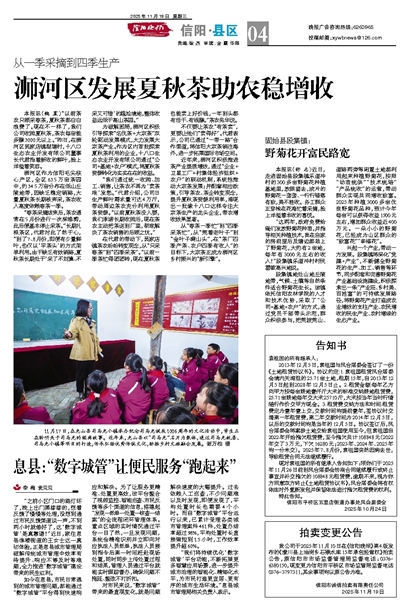 浉河区发展夏秋茶助农稳增收