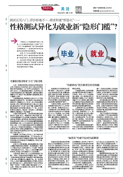 性格测试异化为就业新“隐形门槛”?