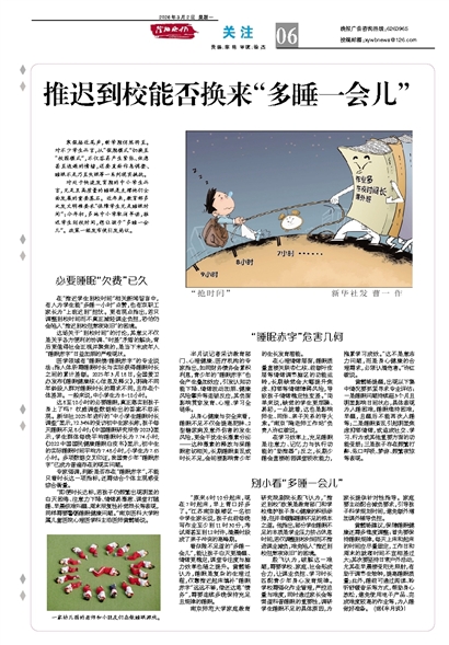 在学习效率上,充足睡眠是注意力、记忆力与执行功能的“助推器”;反之,长期少睡会直接削弱课堂吸收能力,拖累学习成效。“这不是意志力问题,而是身心健康的合理需求,必须认清危害。”许红敏说。